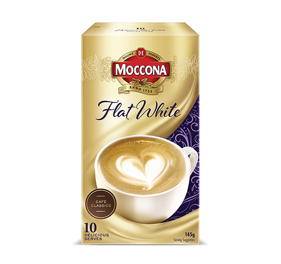 * Take a moment to indulge in our new Moccona Flat White, a well-rounded Moccona coffee with a balanced taste for a more authentic café style experience.