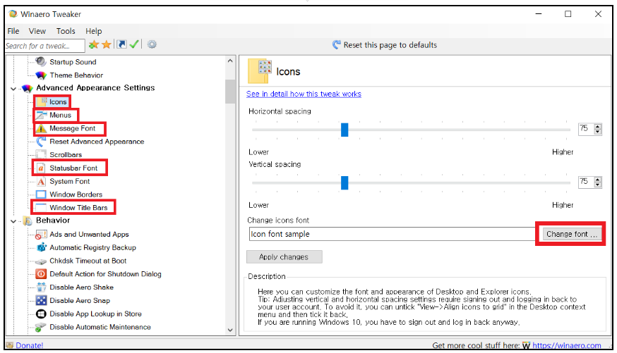윈도우10에서 한글 글꼴에 대한 지원이 부족한 탓인지도 모르겠네요. 하지만 걱정하지 않으셔도 됩니다. 소프트웨어 (Winaero Tweaker)를 사용하면 글꼴의 변경이 가능합니다.