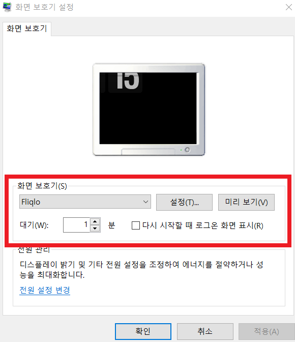 다운로드를 받고 설치를 해주면 자동으로 화면보호기 설정이 팝업되게 됩니다.
