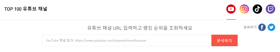 다른 사람들의 유튜브 랭킹을 볼 수 있을 뿐만 아니라 본인이 운영하고 있는 유튜브 채널의 주소를 넣어주면 본인 채널의 순위도 확인을 할 수가 있습니다.