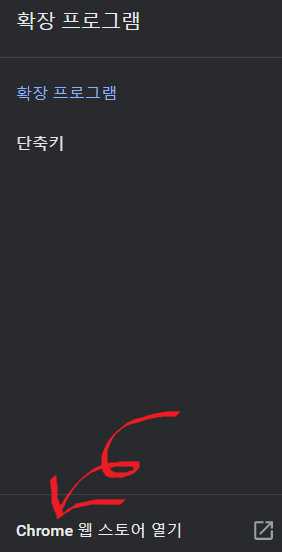 구글 브라우저에서 "설정"으로 진입한 다음 "확장 프로그램"에서 "웹스토어 열기"로 들어가줍니다. 혹은 "메뉴"에서 "도구 더보기" 확장 프로그램"으로 들어가 주셔도 됩니다.