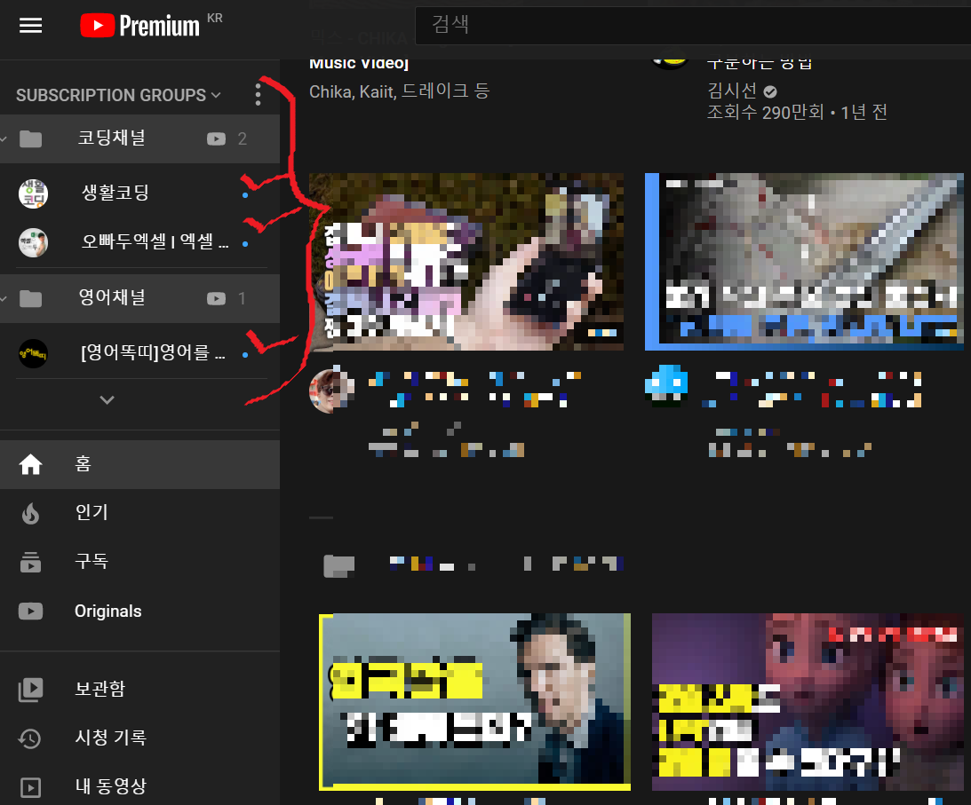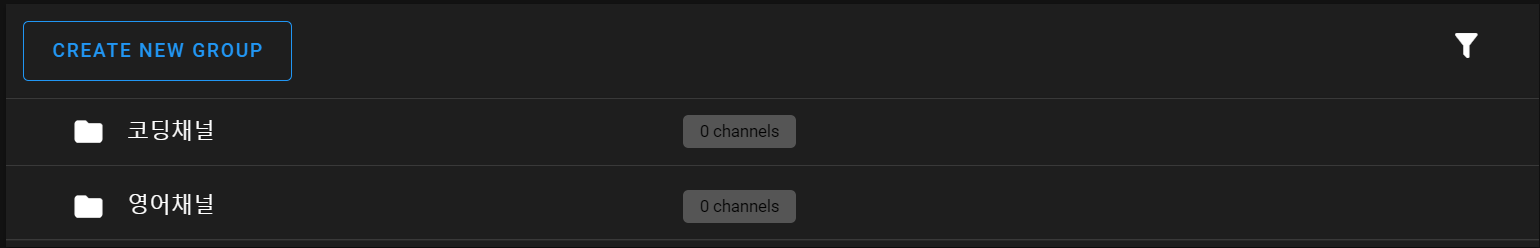 ▼저는 코딩채널과 영어채널 유튜브 그룹 두 개를 생성해보았습니다.