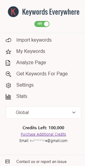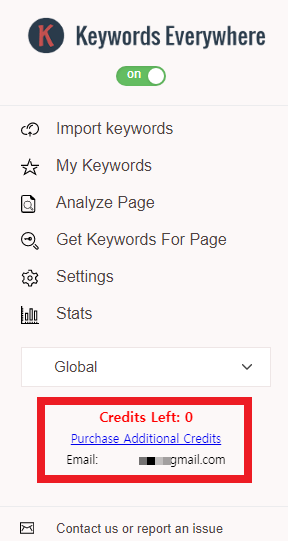 매번 Keywords Everywhere을 켜놓고 사용하게 되면 크레딧이 금방소모 되게 됩니다. 일반적인 상황에서는 확장프로그램에서 On 을 Off로 해놓고 사용하시길 바랍니다.
