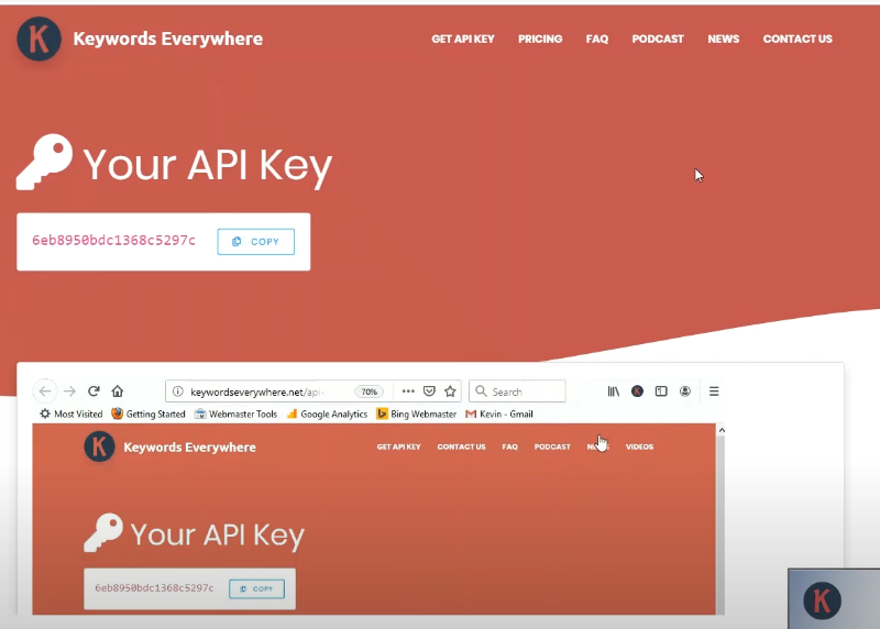 Keywords Everywhere 홈페이지 상단위 Get API key를 눌러 이메일을 적어 주고 API키를 발급받습니다. 10~15분 정도 걸립니다. 안오면 스팸메일함도 확인해보세요. 이메일은 구글메일로 해주세요 네이버메일은 안됩니다.