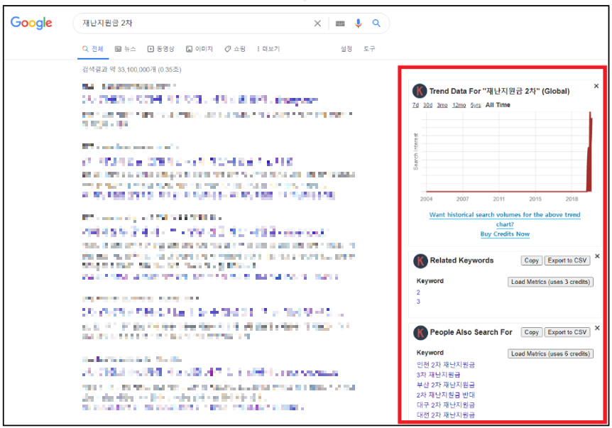 아래 내용은 무료로 사용이 가능한 기능들인것을 참고하세요. 이제 구글에 아무거나 검색해보세요 이제 구글 오른쪽에 재난 지원금의 Global 검색량이 뜹니다.
