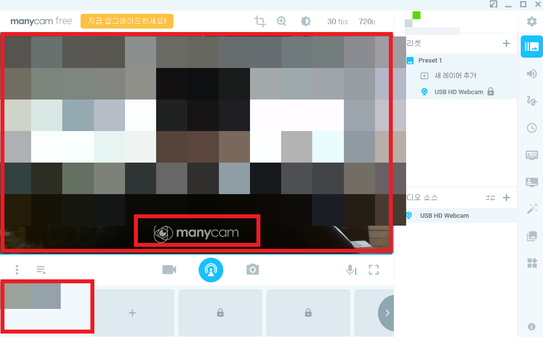 이제 사용준비가 완료 되었습니다. 참고로, manycam.com이라는 마크가 화면 하단에 영구적으로 표시가 됩니다.