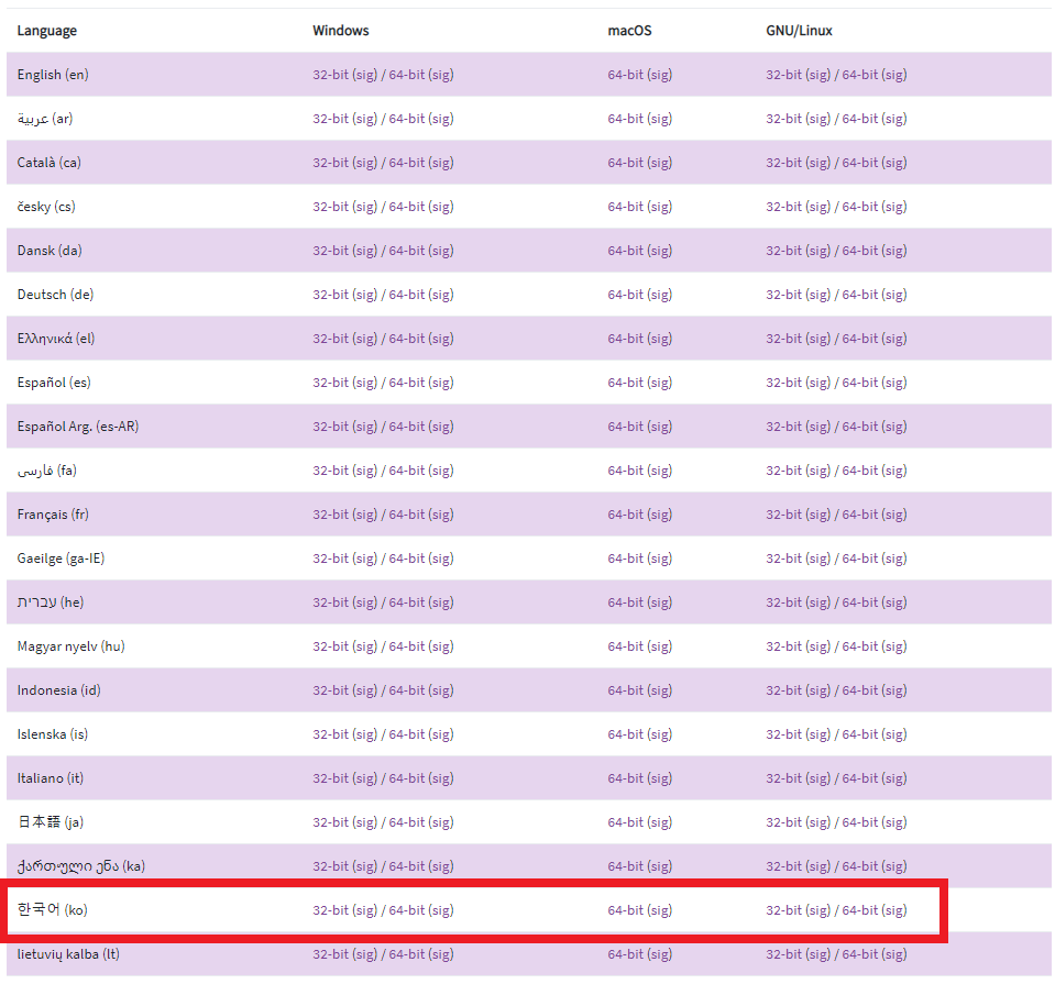 앞서 이미 말씀드렸다시피 아래 버튼을 눌러주시면 다양한 언어로 프로그램을 다운로드 받을 수가 있습니다. 하단으로 죽 내리다 보면 한국말을 쉽게 발견하실 수 있으실 것입니다.