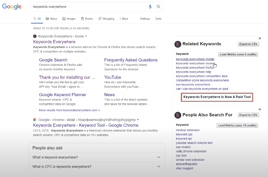 구글에 검색햇을 때, 🔥Keywords Everywhere is now a paid tool이 나오면 성공적으로 등록이 된것을 확인할 수가 있습니다.