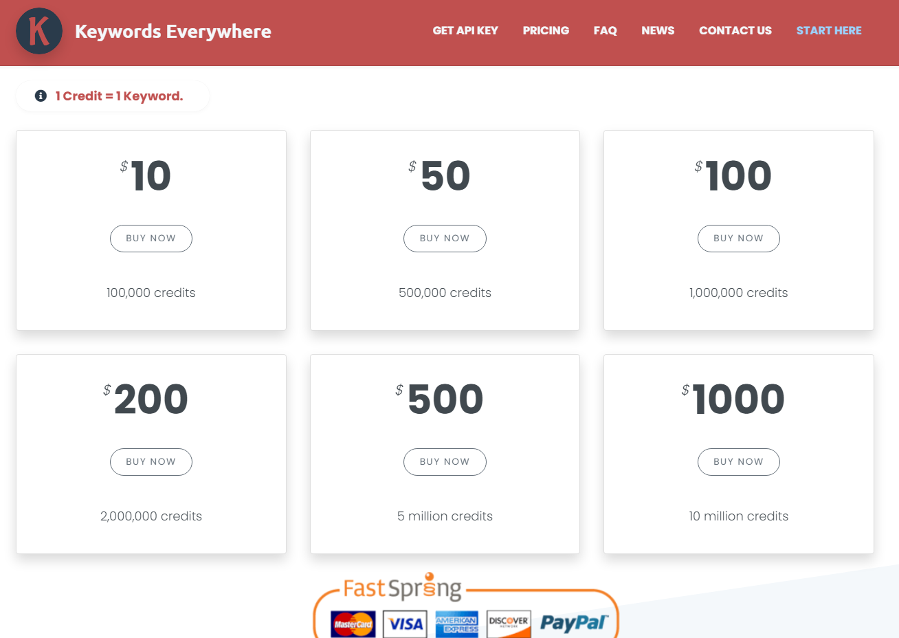 그리고 다시 Pricing 으로 가서 결제를 해줍니다. 🔥1credit은 1개의 keyword를 볼수 있습니다. 1개월 단위의 기간 결제가 아니라 키워드를 보는 횟수에 대한 결제방식입니다.
