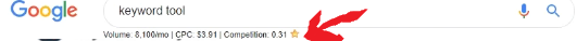 검색을 하게 되면 🔥검색창 바로 하단에 해당 키워드에 대한 CPC가 표시됩니다. 🔥키워드 경쟁도와 검색량도 표시됩니다.