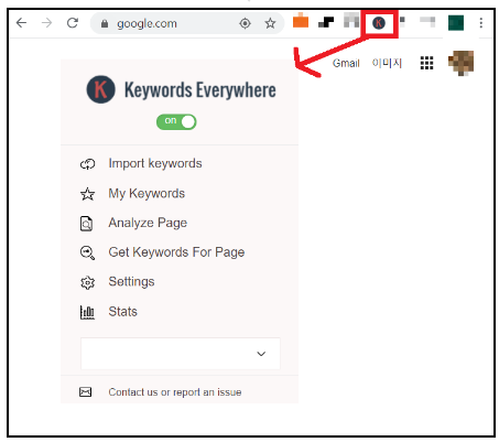 매번 Keywords Everywhere을 켜놓고 사용하게 되면 크레딧이 금방소모 되게 됩니다. 일반적인 상황에서는 확장프로그램에서 On 을 Off로 해놓고 사용하시길 바랍니다.