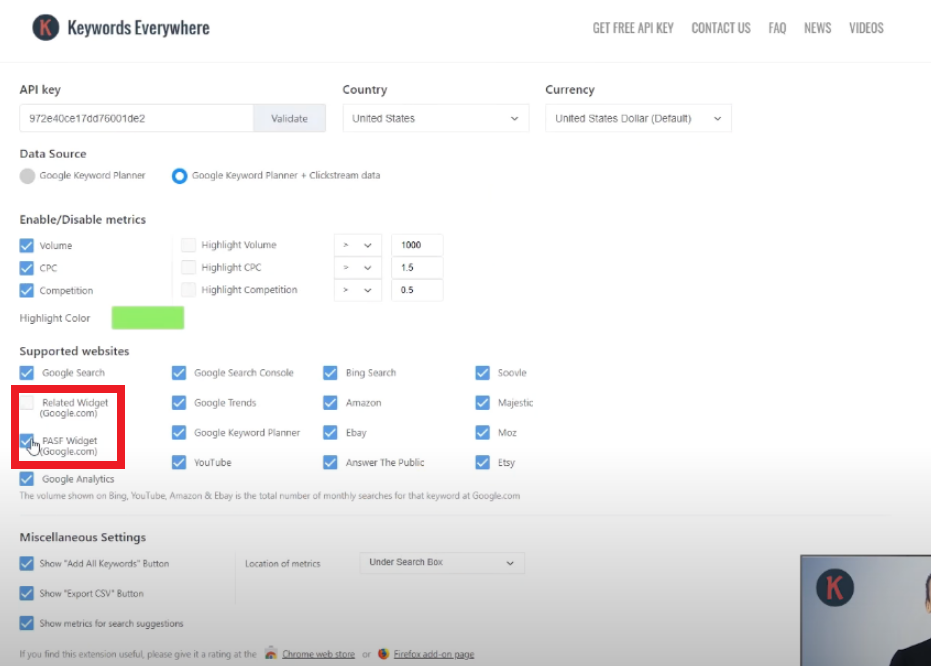 다시 세팅으로 돌아와서 Supported Websites 에서 Related Widget과 🎈필요하다면🎈 PASF Widget 체크박스를 해제해줄수도 있습니다. 사용여부에 달려있습니다. 저는 PASF는 켜놓고 작업을 합니다.
