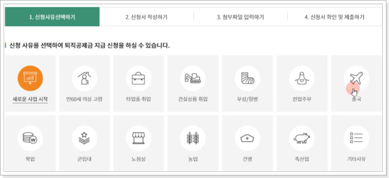 4. 퇴직공제금을 신청하는 사유를 선택합니다.
