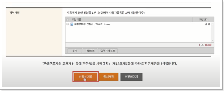 퇴직공제금 신청 방법