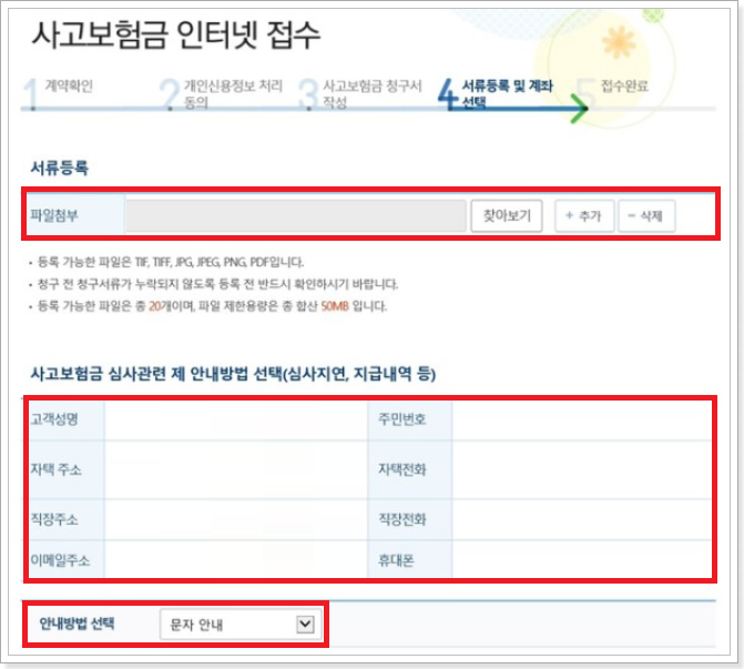 6. 서류를 등록2하고 안내방법 및 계좌정보를 입력합니다.