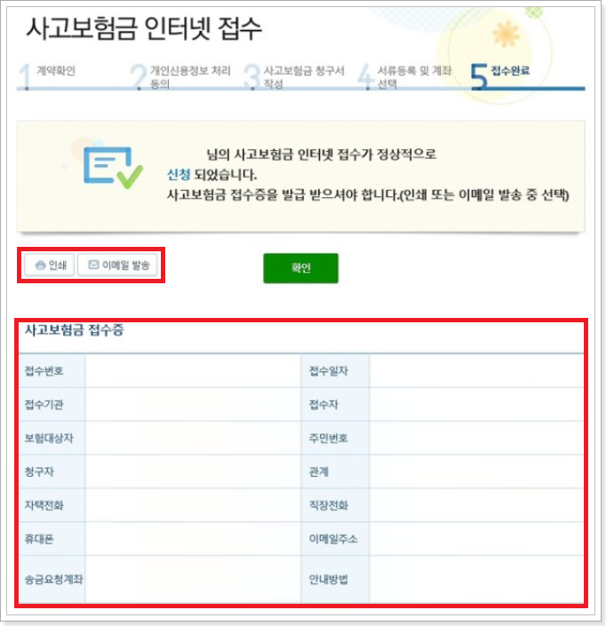 7. 접수가 완료되면 접수증을 인쇄하거나 이메일 발송할 수 있습니다.