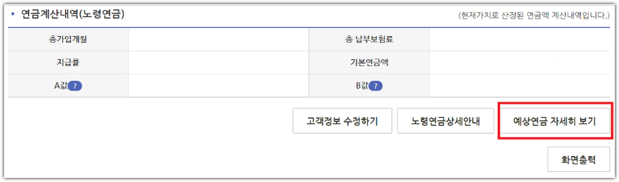 6. 예상 노령연금액(세전)에서 국민연금 예상수령액을 확인합니다.