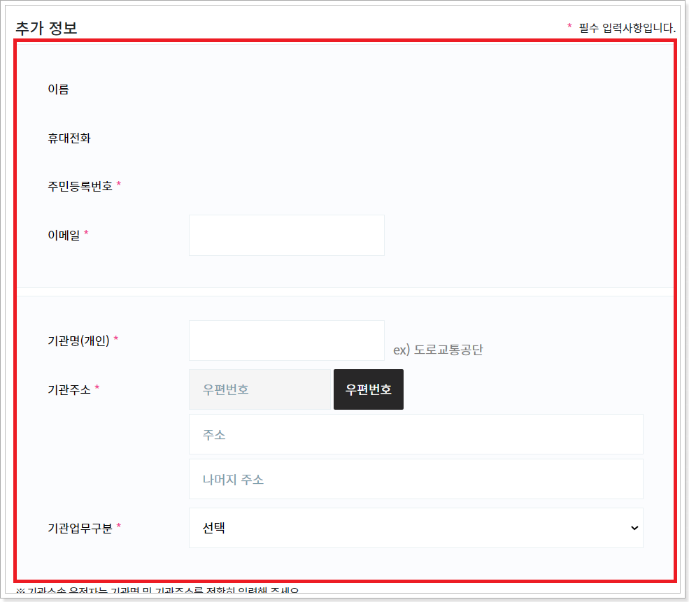 5. 이메일 및 기관 정보를 기입합니다.