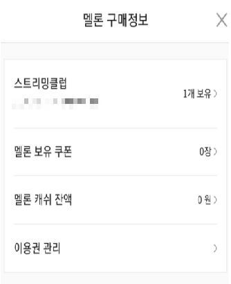 내정보> 멜론구매정보>이용권 관리 순으로 진입해주세요.