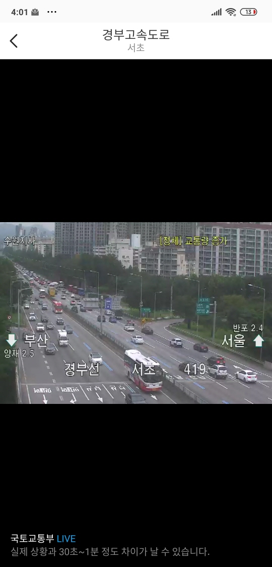 국토교통부에서 제공하는 LIVE 인 것으로 확인됩니다. 실시간이라고는 하지만 실제로 영상이 출력되는 것과 실제와는 약 30초~60초의 차이가 발생할 수 있다고 합니다.