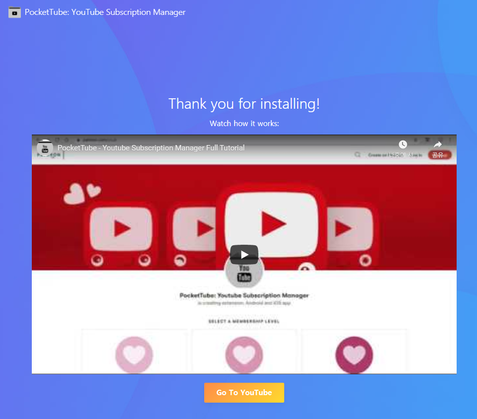 아래와같은 사이트가 나오면 성공적으로 설치된 것입니다. 가운데 Go To YouTube를 눌러보세요.