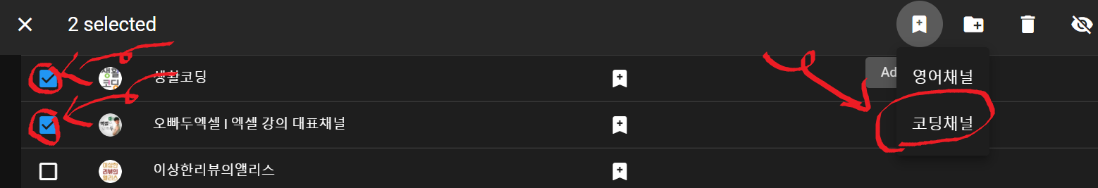 ▼저는 코딩채널과 영어채널 유튜브 그룹 두 개를 생성해보았습니다.
