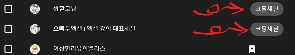 ▼이제 그룹에서 채널 탭으로 옮겨주면 내가 구독한 채널들이 뜨게 됩니다.