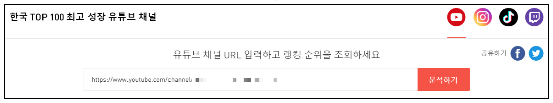 다른 사람들의 유튜브 랭킹을 볼 수 있을 뿐만 아니라 본인이 운영하고 있는 유튜브 채널의 주소를 넣어주면 본인 채널의 순위도 확인을 할 수가 있습니다.