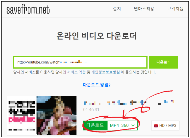 Savefrom.net이라는 사이트로 연결되게 됩니다. 조금만 기다리면 본인이 시청하던 동영상이 뜨게 되면서 "다운로드"버튼을 확인하실 수가 있습니다.