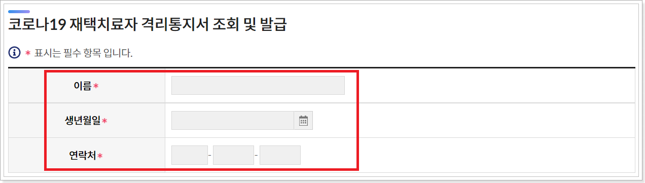 2. 격리통지서 조회 및 발급 서비스를 클릭합니다.
