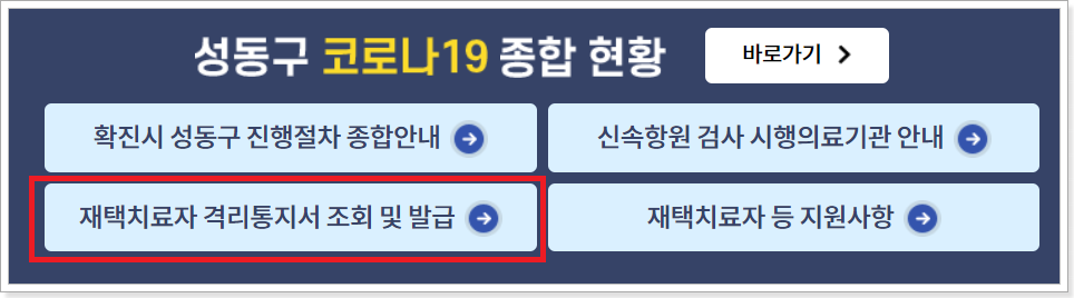 2. 격리통지서 조회 및 발급 서비스를 클릭합니다.