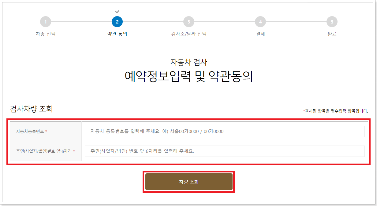 4. 자동차등록번호3 와 주민등록번호 앞 6자리4등을 입력합니다.