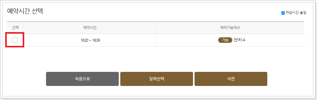 3. 검사를 예약할 항목의 자동차의 종류를 선택합니다.