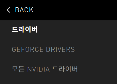 오른쪽 상단 메뉴 버튼을 누르면 드라이버 메뉴를 확인할 수가 있습니다. 모든 NIVIDIA 드라이버로 진입해줍니다.