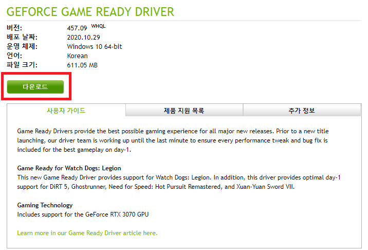 지포스 드라이버 다운로드