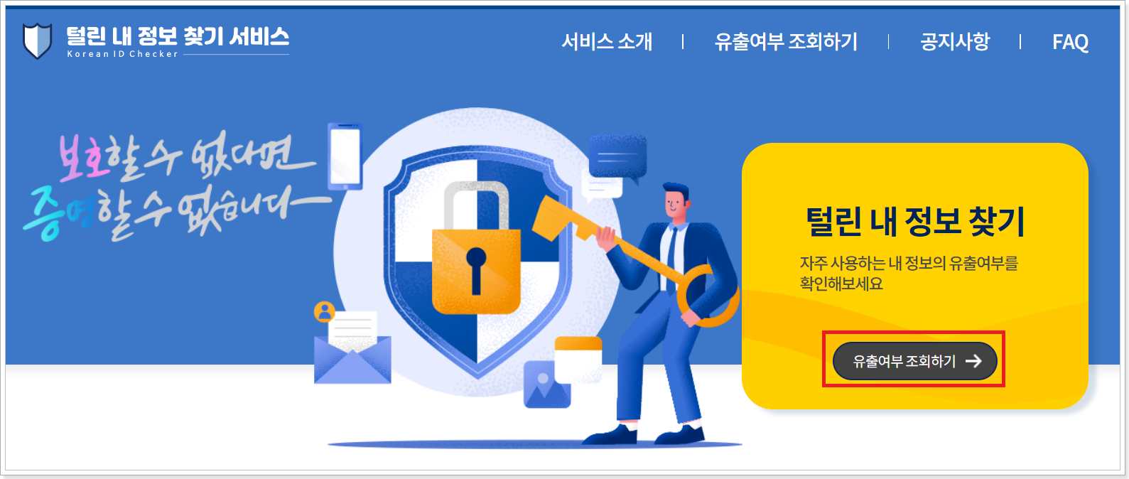2. 털린 내 정보 찾기에서 '유출여부 조회하기'를 클릭합니다.