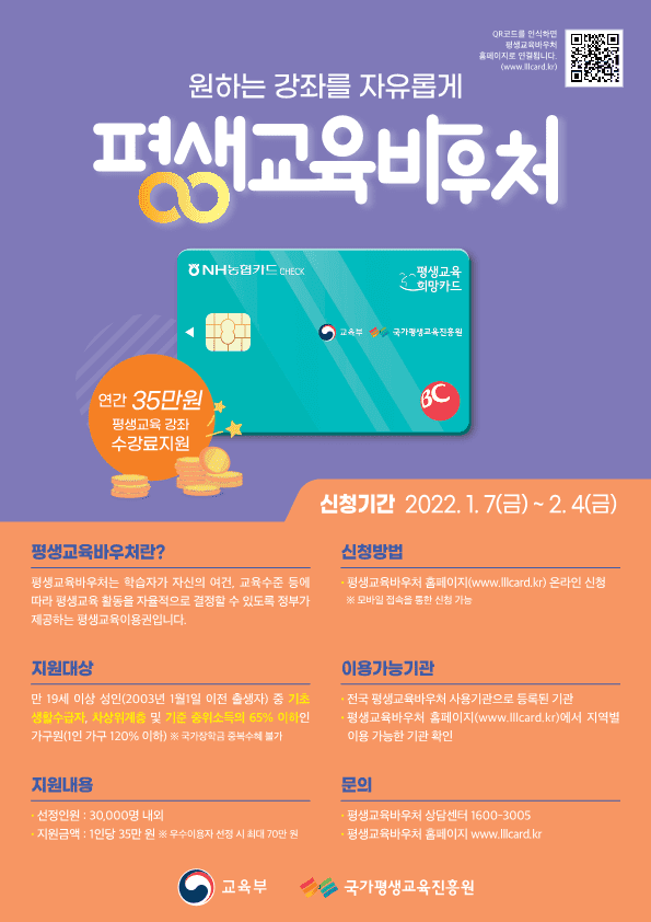 > 7일부터 평생교육이용권 신청 시작…연간 35만 원 지원