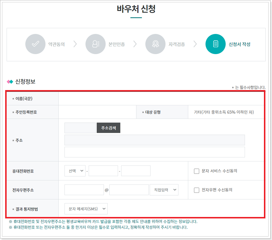 6. 신청정보를 입력합니다.