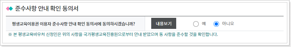 7. 준수사항 안내확인 동의서 여부를 체크합니다.