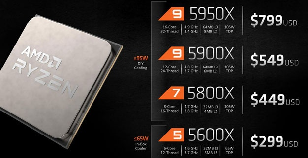 라이젠 7 5800X / 라이젠 9 5900X / 라이젠 9 5950X 가 출시될 예정입니다. X가 붙지 않는 모델은 아직 출시가 될 예정은 없다고 하네요.