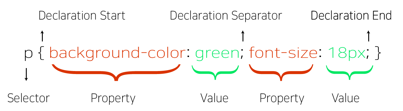 CSS는 Cascading Style Sheets 의 약자로서 HTML로 만들어진 요소들이 폰트, 색상, 기울기, 위치 등 어떻게 보여지는 지에 대한 것을 이야기 합니다. 우선 CSS 문법은 아래와 같은 기본적인 틀을 가지고 있습니다.