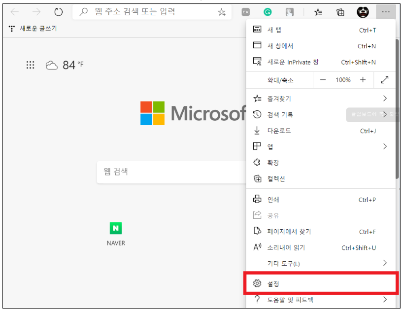 우선 마이크로소프트 엣지를 실행시켜 준 뒤, 오른쪽 위의 메뉴 버튼을 눌러줍니다. 💬