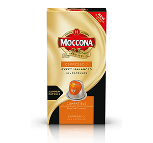 * With a blend of quality Arabica and soft Robusta, Moccona Espresso 7 capsules result in a pleasantly sweet taste experience with a balanced aroma. Packed with 100% roast and ground coffee beans, and sealed in an aluminium capsule to lock in the freshness for an elegant Moccona espresso.