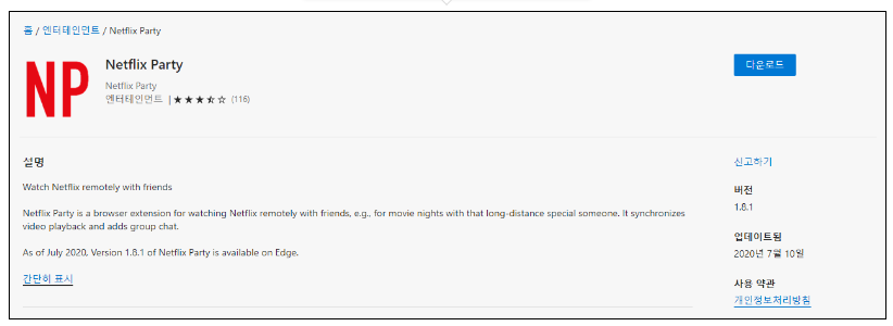 아마도 가장 최근에 소개된 기능 중 가장 재미있는 기능이 아닐까 싶습니다. 이번에 소개해드릴 방법은 Netflix Party 라는 브라우저 확장설치로 채팅을 하는 방법입니다.