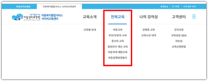 > 아동권리보장원 아동복지통합서비스 사이버교육센터 공식 홈페이지