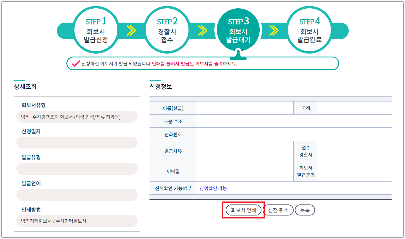 범죄수사경력회보서는 경찰청의 범죄경력회보서 발급시스템 온라인 홈페이지를 통해 신속하고 간편하게 신청할 수 있습니다. 본인확인용으로 널리 쓰이고 있는 이 서류는 비자발급, 해외입국, 체류, 영주권 신청, 해외취업용 등으로 사용이되고 있습니다.
