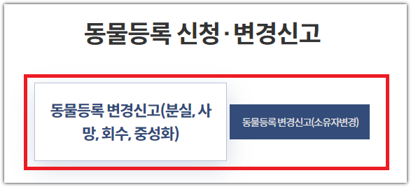 | 30일 이내 | 등록동물이 죽은 경우, 잃어버린 동물을 되찾은 경우, 외장형 목걸이(칩)등이 재발급이 필요한 경우, 소유자가 변경된 경우 등 |