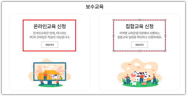 ※ 차량의 경우, 농가 보수교육을 들은 뒤 수강신청을 하시면 자동으로 수료처리됩니다.