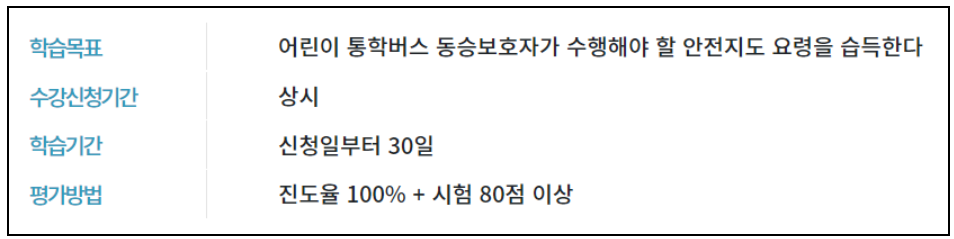 동승보호자교육으로 들어오면 간단한 개요를 확인할 수가 있습니다.