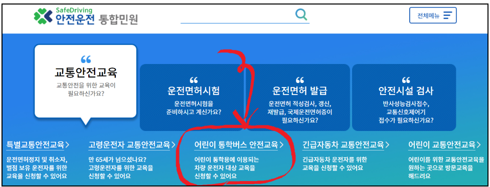 참고로 이러닝센터에서는 동승자보호과정 외에도 '교통안전 담당교사', '교통안전 열린교육', '교통안전 체험관 예약'등의 서비스를 운영하고 있습니다.